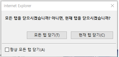 익스플로러 ‘항상 모든탭 닫기’ 해결