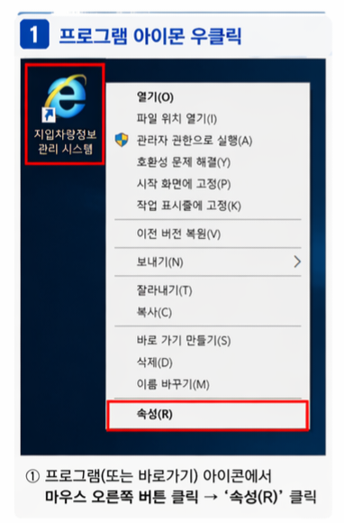 아이콘 우클릭 → 속성