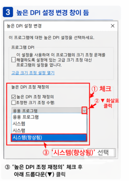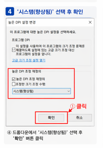 1. 프로그램 DPI 설정 변경 (가장 중요)